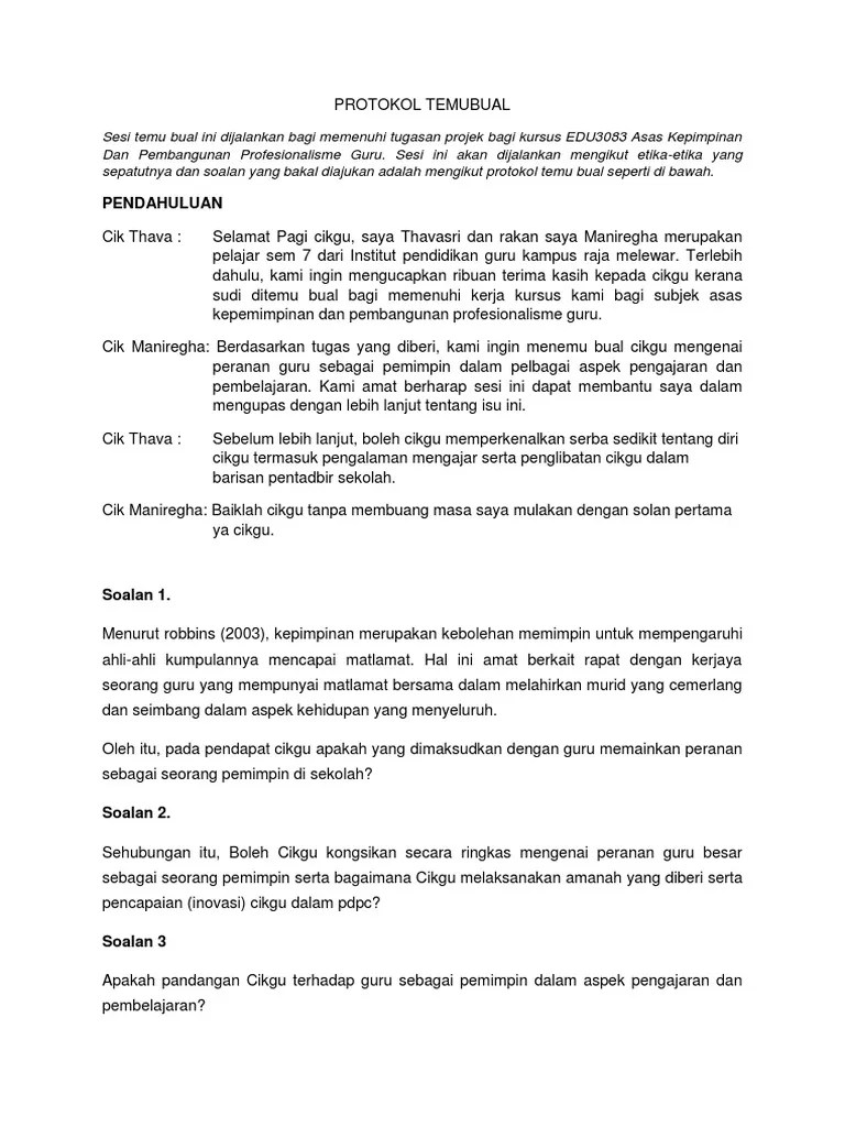 Contoh Transkrip Temubual Guru - Soalan Temu Bual Tentang Pendidikan Temusahaja